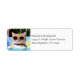 Ein lustiges Label für Katzenliebhaber, hier ist eine sassy Katze, die eine Sonnenbrille am Pool trägt und cool aussieht (und urteilsfähig).