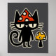 Funny Cat With Mushroom Hat Black Cat With Toadsto Poster
