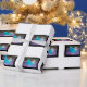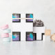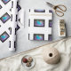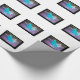 Gemustertes Packpapier für Hühnerliebhaber. Dieses einzigartige Design hat blaue Hähnchen auf einem lila Hintergrund, lustige Digitalkunst aus meinem original Hühnerglas-Gemälde, Copyright Annabel Potter