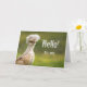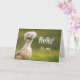 Diese lustige Hühnerkarte ist die perfekte Botschaft für einen Freund. Die erste Nachricht lautet: "Hallo. Das bin ich." Und die innere Nachricht sagt: "Hüpfe dich einfach an!" Das Vorderbild zeigt ein niedliches Foto eines jungen polnischen Hühnchens. Fotografie erstellt von der preisgekrönten Fotografin Maria Jeffs.