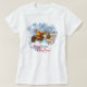 Weihnachten für Hühnerliebhaber - ein paar zauberhafte Hühner am Nordpol - Frohe Weihnachten in dekorativer Rotskriptkalligraphie - ein nächtlicher blauer Aquarellhintergrund - Schneeflocken zeigen in dunklen Shirt-Farben, während bei hellen Shirts der Himmel wie Dämmerung oder bewölkter Winterhimmel aussieht. © Whimsical Artwork™