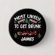 Am wahrscheinlichsten, betrunken zu werden. Funny Weihnachten Abzeichen, Button oder Button für jemanden mit einem Sinn für Spaß an diesem Weihnachtsfeiertag. Niedliche Textarten mit Baumschmuck. Einfach zu personalisieren mit jedem Namen.