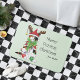 Niedliche Kalico-Katze gekleidet in Weihnachtsbeleuchtung, gestopfte Antlers, Weihnachts-Weihnachtsmannmütze, und ein großer grüner Bogen vor einem Hintergrund von hellgrün, das Kätzchen ist nicht glücklich!