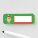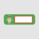 Dieses phantastische Trockenetikett zeigt einen lustigen Cartoon eines Eis mit Armen und Beinen. Das Ei hat Arme und Beine und ein kleiner Riss im Kopf, der das weiße Innere aussetzt. Es hat blaue Augen mit einem schwarzen Schüler und ein großes Lächeln, wo das Eigelb des Eis zu sehen ist. Die Muschel sieht rau aus. Dieses Weihnachtseii trägt eine Weihnachtsmannmütze, die bereit ist, in dieser Weihnachtszeit Party.