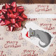Eine graue Katze mit einer roten Weihnachtsmannmütze. Die graue Katze ist grauenhaft über Weihnachten