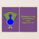 Diese phantastische, schlanke Folienkarte zeichnet sich durch einen hellen und kühnen Weihnachtsbaum aus, der eine Weihnachtsmannmütze trägt. Der Vogel hat einen hellblauen Bauch mit einer schönen Sammlung von Federn stolz hinter sich gehalten. Die Augenhose ist blau, braun und grün. Der Pfau hat große schwarze Augen und einen niedlichen grauen Schnabel. Im Inneren befindet sich ein individualisierbarer Gruß, mit dem Sie Ihre Karte personalisieren können.