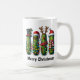 A cute, fun mug to drink your coffee or hot chocolate in this holiday season! Christmas pickles in jars wrapped in Christmas lights and dressed in Santa , snowman and reindeer hats.