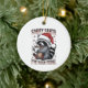 Funny Christmas Raccoon Ceramic Ornament