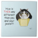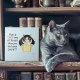 Eine Tabbykatze hat sich in eine gelbe Kiste gestopft und nun sieht die Katze ein bisschen wie ein Muffin oben aus
