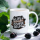 Beginnen Sie Ihren Tag mit Spaß und Stil! Dieses mutige typografische Design zeigt das Zitat "Leben geschieht, Kaffee hilft" auf einem schwarzen Hintergrund. Es ist perfekt für Kaffeeliebhaber geeignet und verbindet lustiges Ambiente mit modernem Stil. Eine lustige Kaffeegenießerie und eine coffeful Tasse lustig muss haben!