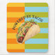 A fun, fabulous pop culture mouse pad in bold beautiful retro style in bright stripes of yellow, orange, green and blue, with a mouthwatering taco graphic. A text template spells out "POWERED BY TACOS" in whimsical typeface. You can edit the text if you wish, or leave as shown. Make your workspace more fun with this unique mousepad to brighten up your time online.