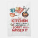 Fügen Sie Ihrem Zuhause Spaß mit diesem spielerischen Küchentuch mit dem witzigen Satz hinzu: "Die Küche war gestern sauber, Entschuldigung, dass Sie sie verpasst haben." Illustriert mit einer Bratpfanne, Tasse, Gewürzen und essenziellen Küchenutensilien, zeichnet dieses charmante Kunstwerk das herrliche Chaos des täglichen Kochens aus. Ideal für Zuhause-Köche, Nahrungsliebhaber oder alle, die wissen, dass Schlamassel nur ein Teil der Magie ist. Eine lustige und verlässliche Aussage für Küchen voller Geschmack und Lachen.