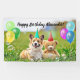 Fun Happy Geburtstagsbanner eines Foto Art detailliert illustrieren Stil lustigen Korgi Hund und niedlich Teddy Bär mit Party Hüten und schwimmenden Ballons. Eine tolle Idee für Ihr Party für Ihr kleines Kind: Sohn oder Tochter. Sie können den Text anpassen, um Name und Nachricht zu ändern.