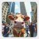 Eine sonderbare und unglaublich witzig Kuh, die sich in einer belebten Straße in einer Stadt befindet. Ideal für Tierliebhaber und für diejenigen mit einem Sinn für Spaß über das Stadtleben.