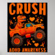 Funny Crush Adhd Awareness T-rex Monster Truck Kid Poster
