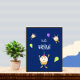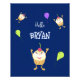 Poster mit niedlichen Happy Cakes auf dunkelblauem Hintergrund und Party Ballons