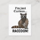 Funny Curious Raccoon Business Card original design by Nisha Prabhu. Fully Customizable. Personalize with your details. Make a memorable first impression with our Funny Curious Raccoon Business Card! Perfect for those with a playful side, this unique design showcases an adorable raccoon sporting its signature curious expression, adding a touch of whimsy to your professional presence. Designed with a vibrant and eye-catching layout, this business card not only highlights your contact information but also reflects your fun personality. Whether you’re in a creative field or simply want to stand out from the crowd, this card is the perfect choice for showcasing your individuality.