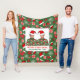 Diese hässliche Weihnachtsflockendecke mit zwei Leuten, die den gleichen Ugly Weihnachtspulli und Santas-Hut tragen, ist maßgeschneidert und personalisiert. Grüner Pullover mit festlichen Urlaubsmustern mit Weihnachtsschmuck, Santa-Claus-Hut, Zuckerpflaumen, Schneeflocken und Weihnachts-Strümpfen. Laden Sie ein zugeschnittenes Foto, kein Hintergrund oder ein weißes Hintergrundbild hoch (am besten funktionieren passähnliche Fotos) Stellen Sie Textbereiche ein und personalisieren Sie mit Familienname und Jahr. Original Geschmacksmuster von Suki's alle Rechte vorbehalten.