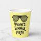 Funny Custom Papier Tassen für Sommer Geburtstag Party. Fügen Sie Ihren eigenen personalisierten Text und Namen hinzu. Spaß Sonnenbrillen Design mit cooler Typografie. Ideal für Feiern mit Kindern oder Erwachsenen. Auch praktisch für andere Anlässe wie tropische Hochzeit, Sommer GRILLEN, Verlobung, Brautparty, Ansammlung, Wiedersehen, Girls Wochenende und mehr. Party für Zuhause und Büro. Doppelsiegreicher Druck mit gelber oder anderer Farbe.