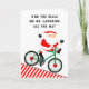 Kreative Weihnachtskarten mit dem Weihnachtsradfahrer, der ein Fahrrad und eine lustige Linie fährt.