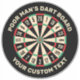 Witziger Aufkleber. Vector Dartboard Design mit anpassbaren Farben. Entfernbare Zahlen. Zwei benutzerdefinierte Textfelder im Kreis.