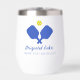 Wer ist dein ausgewiesener Dinker? Der sonnige Weinkeller hat Pickleball Paddles überquert, eine Kugel und 2 Zeilen personalisierten Textes. Perfekt als Club- oder Turnierpreis, Geschenk für Ihre Pickleball-Freunde, ein Pickleball-Trip-Memento, Drink-Ware für apres pickleball Ansammlungen und einfach nur jeden Tag pickleball Spaß! Ändern Sie einfach Paddel, Ball und Text.