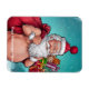 Ein humorvolles und sonderbares Weihnachtsthema, das einen komischen Weihnachtsmann in einem spielerischen, lässigen Staat der Entkleidung zeigt - nur mit seinem Hut. Der Hintergrund besteht aus sich wiederholenden skurrilen Elementen, wie dem Weihnachtsmann in verschiedenen spielerischen Positionen und festlichen Objekten wie verpackten Geschenken und Elfen, alles Set vor einem grünen Hintergrund mit Schneeflocken, Sternen und Weihnachtsdekor-Elementen.