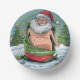 Ein humorvolles und sonderbares Weihnachtsthema, das einen komischen Weihnachtsmann in einem spielerischen, lässigen Staat der Entkleidung zeigt - nur mit seinem Hut. Der Hintergrund besteht aus sich wiederholenden skurrilen Elementen, wie dem Weihnachtsmann in verschiedenen spielerischen Positionen und festlichen Objekten wie verpackten Geschenken und Elfen, alles Set vor einem grünen Hintergrund mit Schneeflocken, Sternen und Weihnachtsdekor-Elementen.