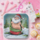 Ein humorvolles und sonderbares Weihnachtsthema, das einen komischen Weihnachtsmann in einem spielerischen, lässigen Staat der Entkleidung zeigt - nur mit seinem Hut. Der Hintergrund besteht aus sich wiederholenden skurrilen Elementen, wie dem Weihnachtsmann in verschiedenen spielerischen Positionen und festlichen Objekten wie verpackten Geschenken und Elfen, alles Set vor einem grünen Hintergrund mit Schneeflocken, Sternen und Weihnachtsdekor-Elementen.