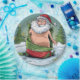 Ein humorvolles und sonderbares Weihnachtsthema, das einen komischen Weihnachtsmann in einem spielerischen, lässigen Staat der Entkleidung zeigt - nur mit seinem Hut. Der Hintergrund besteht aus sich wiederholenden skurrilen Elementen, wie dem Weihnachtsmann in verschiedenen spielerischen Positionen und festlichen Objekten wie verpackten Geschenken und Elfen, alles Set vor einem grünen Hintergrund mit Schneeflocken, Sternen und Weihnachtsdekor-Elementen.