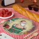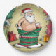 Ein humorvolles und sonderbares Weihnachtsthema, das einen komischen Weihnachtsmann in einem spielerischen, lässigen Staat der Entkleidung zeigt - nur mit seinem Hut. Der Hintergrund besteht aus sich wiederholenden skurrilen Elementen, wie dem Weihnachtsmann in verschiedenen spielerischen Positionen und festlichen Objekten wie verpackten Geschenken und Elfen, alles Set vor einem grünen Hintergrund mit Schneeflocken, Sternen und Weihnachtsdekor-Elementen.