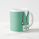 Kreative Tasse mit Krankenhauspeeling, Stethoskop und lustigem Schweizer Taschenmesser. So personalisieren Sie Text bearbeiten, um den Namen des Arztes hinzuzufügen.