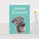 Suchen Sie eine lustige Osterkarte für den Hundefreund in Ihrem Leben? Dann schauen Sie nicht weiter. Dieses niedlich lächelnde Jungtier lasse dir sicher, dass er dir ein paar Schokoladeneier im Hof verlassen hat...oder vielleicht sind sie eigentlich keine Eier.