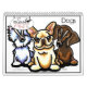 Zwölf handgezeichnete Illustrationen von Andie of Off-Leash Art, die verschiedene Hunderassen in lustigen Posen darstellen. Spaß für Kaninenliebhaber jeden Alters.