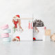 Zu niedlich in einer roten Weihnachtsmannmütze und passendem Winterschal, ist dieser Cavalier König Charles Spaniel aus der Fleas Navidog-Sorte und ist bereit, Urlaubsgrüße an oder vom Liebhaber des Haustieres zu schicken.