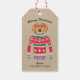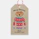 Funny Winter Weihnachtsgeschenk Tag mit einem Hund mit roter Brille und einem "Ugly" Weihnachtsweih Nordic Sweater Set vor tan Leinen Look Hintergrund. Fügen Sie Ihren benutzerdefinierten Text über und Name unten oder löschen Sie. Das ist der ideale Begleiter für Hundefreunde, Weihnachts-Sweatshirt-Party und White Elephant-Urlaub oder Secret Santa Geschenk Austausch-Party.