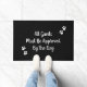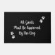 Begrüßen Sie die Gäste auf Ihrer Zuhause mit einer lustigen Begrüßungsmatte, die mit dem skurrilen Schriftzeichen "Alle Gäste müssen vom Hund genehmigt werden" und mit weißen Pfotendrucken an den gegenüberliegenden Ecken versehen ist. Die schwarze Hintergrundfarbe kann auf eine beliebige andere Farbe geändert werden, indem Sie eine andere Hintergrundfarbe als die Farbauswahl auswählen. Sie können den Text auch bearbeiten, wenn Sie ihn wünschen, oder ihn als geschrieben verlassen. Diese Türmatte ist ein nettes Geschenk für Hundebesitzer.