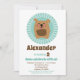 Die Einladung zum Geburtstag dieses Kindes enthält einen lustigen braunen Hund mit rosa Zunge auf türkisfarbenem Hintergrund.