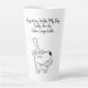 Ein niedlicher Hund, der einen Knochen auf dem Kopf ausbalanciert. Der Aufenthalt beim Hund fordert eine zusätzliche Latte.