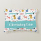 Hundes, kleines, buntes Hundsmuster. Niedlich Akzent Kissen personalisiert mit dem Namen Ihres Kleinen.