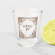 A funny drinking themed shot glass with a decorative border. Use "Personalize this template" to change the "Bottoms Up!" text and create a unique, customized gift. Featuring my original border design inspired by Mughal and Persian ornament which often combines busy geometric and floral elements. The centre piece of each corner is a stylized lotus bud, surrounded by curling, leafy tendrils and decorated with hand drawn geometric shapes.
