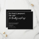 Schwarz-Weiß-Karte Save the Date mit Ihm (endlich) vorgeschlagen. Sie sagte: Er wachte (endlich) auf! Fügen Sie Namen, Ort und Ihr spezielles Datum hinzu, um sicherzustellen, dass die Leute bereit sind, mit Ihnen zu feiern!