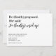 Schwarz-Weiß-Karte Save the Date mit Ihm (endlich) vorgeschlagen. Sie sagte: Er wachte (endlich) auf! Fügen Sie Namen, Ort und Ihr spezielles Datum hinzu, um sicherzustellen, dass die Leute bereit sind, mit Ihnen zu feiern!