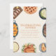 Feiern Sie Erntedank mit Stil und Wärme! Diese wunderschön gestaltete Einladung enthält eine Reihe von köstlichen Geschirr, die an den Rändern verziert sind und einen festlichen Rahmen für Ihre Party-Details schaffen. Von goldgeröstetem Truthahn bis hin zu lebendigem saisonalem Gemüse, jeder Teller mit Essen verleiht dem Gaumen eine Touch von Charme und köstlichem Charme. In der Mitte des Gebäudes gibt es genügend Platz, um alle Ihre Veranstaltungsdetails zu berücksichtigen, sodass Sie die Zeit, das Datum und die Lage Ihrer Ansammlung leicht feststellen können. Ideal, um den Ton für ein unvergessliches Erntedank-Fest zu setzen, ist diese Einladung eine angenehme Art, Liebhaber an Ihren Tisch zu laden.