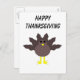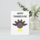 Diese lustige Erntedank-Postkarte zeigt einen lustigen Cartoon eines Truthahns mit großen schwarzen Augen, einem kleinen gelben Schnabel und Schwanz-Federn, die aufhängen. Die Füße stehen in entgegengesetzter Richtung, wodurch der Truthahn unbeholfen aussieht. Dieses amüsante Design eignet sich ideal für Erntedank.Auf der Postkarte befindet sich ein benutzerdefinierbarer Text, der es Ihnen ermöglicht, ihn zu personalisieren.