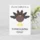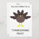 Dieses lustige Erntedank-Fest lädt Sie ein mit einem lustigen Cartoon eines Truthahns mit großen schwarzen Augen, einem kleinen gelben Schnabel und Schwanz-Federn, die aufhängen. Die Füße stehen in entgegengesetzter Richtung, wodurch der Truthahn unbeholfen aussieht. Dieses amüsante Design ist ideal für Erntedank. Auf der Rückseite befindet sich ein anpassbarer Text, damit Sie diese Einladung personalisieren können.