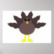 Dieses Poster zeigt einen lustigen Cartoon eines Truthühners mit großen schwarzen Augen, einem kleinen gelben Schnabel und Schwanz Federn, die aufhängen. Die Füße stehen in entgegengesetzter Richtung, wodurch der Truthahn unbeholfen aussieht. Dieses amüsante Design ist ideal für Erntedank.
