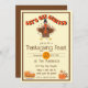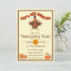 Erntedank Einladung mit "Lasst uns erleiden" und einem niedlichen Truthahn, Kürbiskuchen und Kaffee.