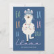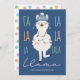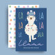 Die Weihnachtskarte "Fa La La La La La La La La La Llama" ist mit einem niedlichen Lama im Winter und Weihnachtsbeleuchtung auf marineblau Hintergrund mit "Fleece Navidad"-Urlaubssegment und pastellfarbenem Polka-Punktmuster auf der Rückseite ausgestattet. Kunst von KL Stock.