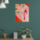Darstellung eines nahen Details einer hübsch aussehenden Frau, die ein Gesicht zieht. Sie sieht so aus, als ob sie Angst oder überrascht von etwas haben könnte. Bilder auf verschiedenen Geschenken und Produkten erhältlich.